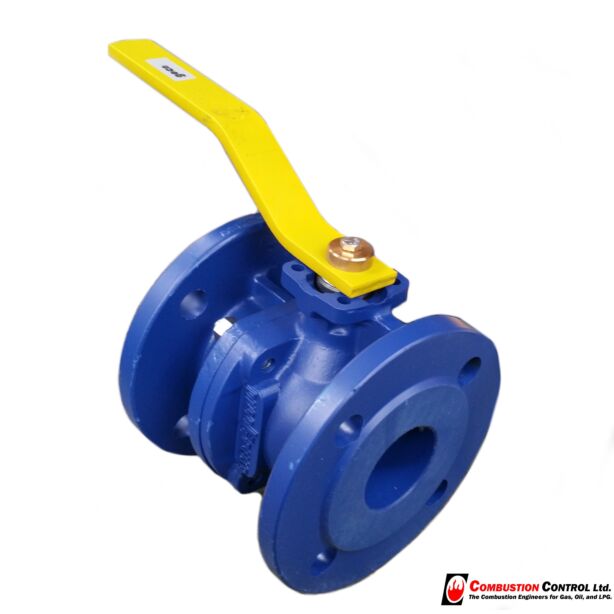 Ball valve DN50 flanged PN16, Cast Iron Body with long lever handle AGA Approved 4617 Cert 6633